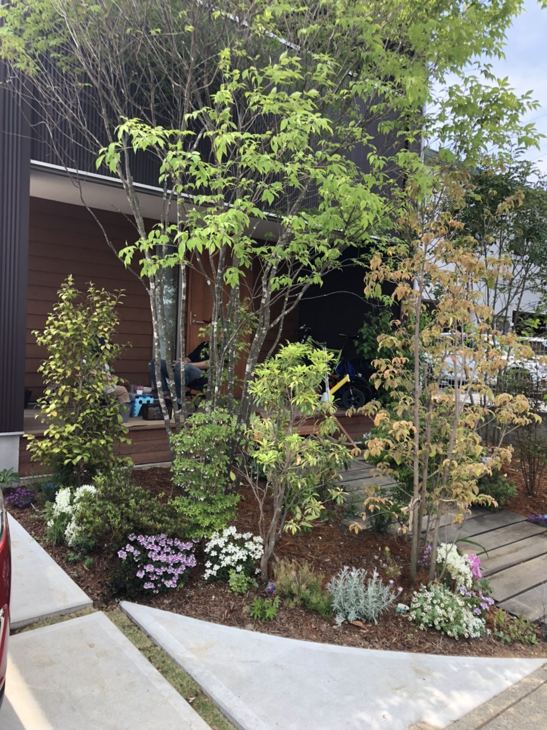春になり下草や植えた木々も芽をだし、新緑の美しいお庭となってきたようです。