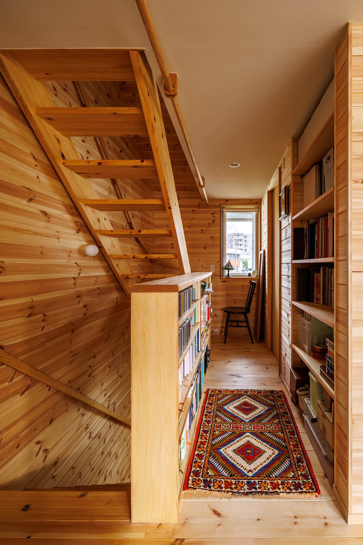 また、小屋裏とのつながりや冷暖房効率を考えて吹き抜けを計画したことで、小屋裏に配置したエアコン1台で快適に過ごせているとの喜びの声をいただいています。