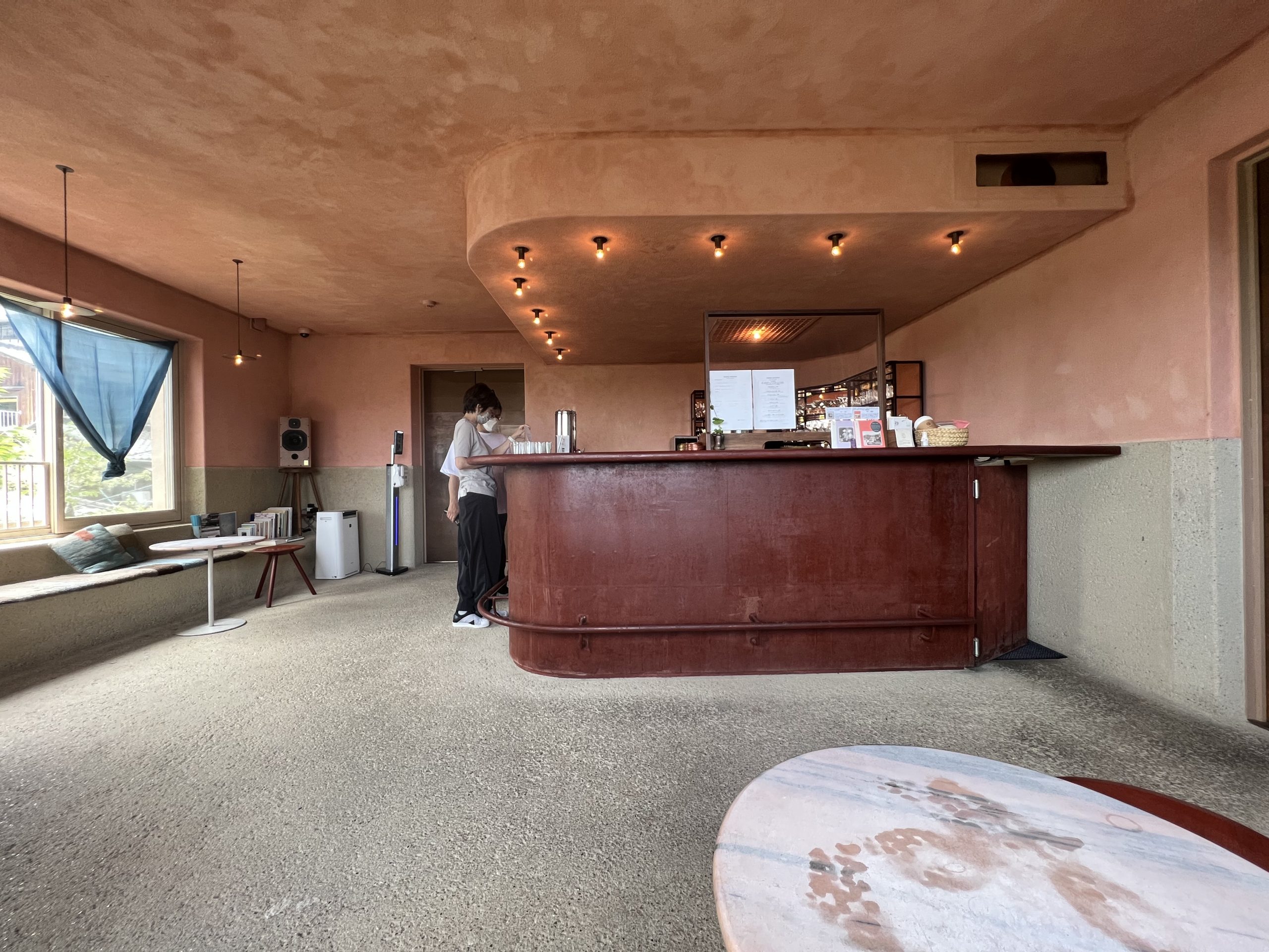 施設内のカフェ。色合いや素材、配置がどれも絶妙でした。