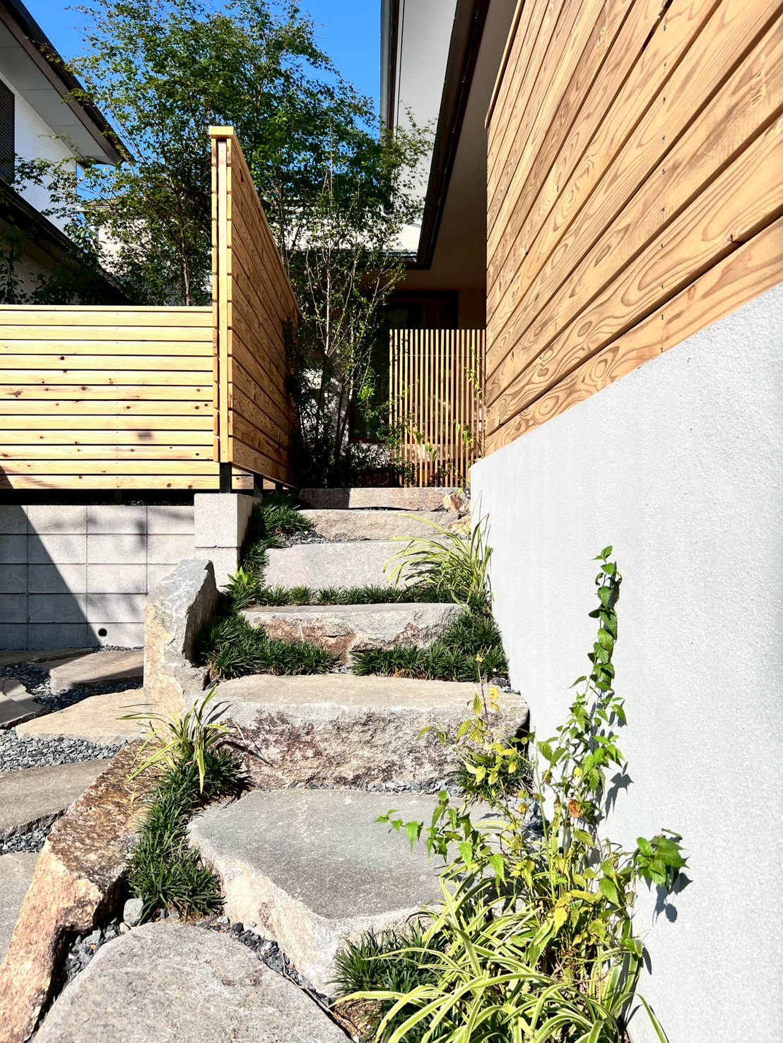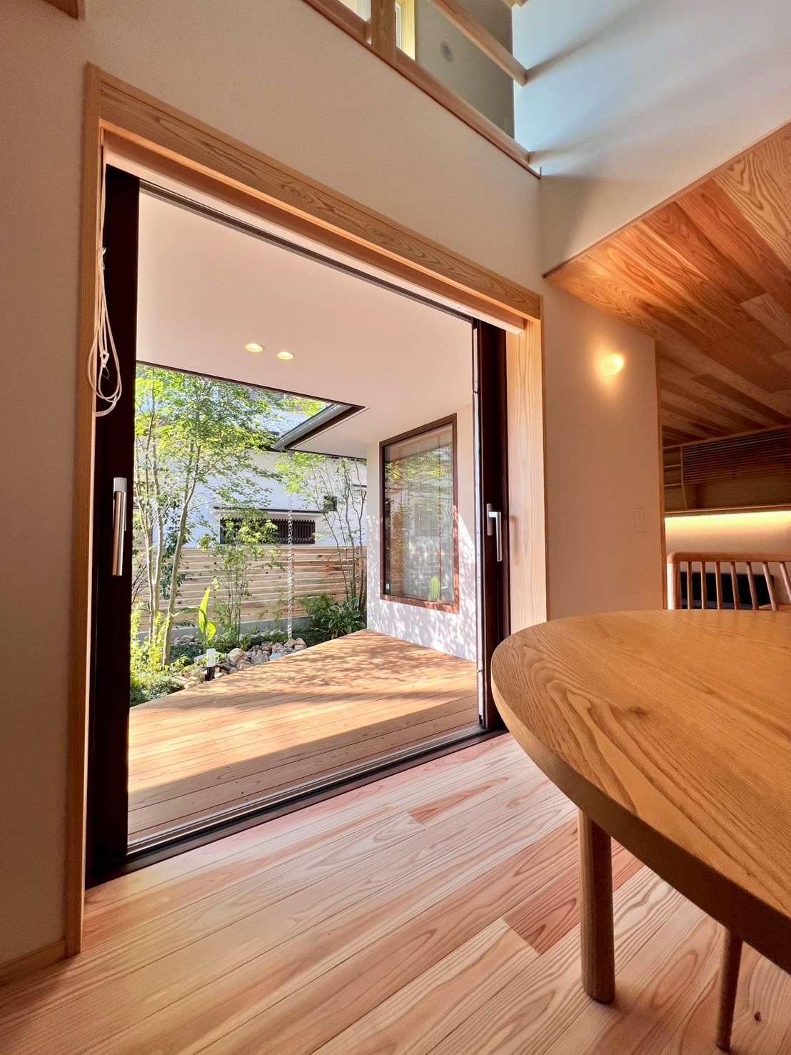 中庭は住空間とのつながりを感じられる場となり、外からの視線を気にせずくつろげる**“もう一つのリビング”**にもなっています。