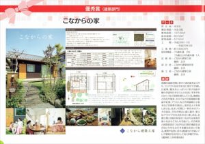 埼玉県環境住宅賞で『こなからの家』が優秀賞をいただいた作品集が届きました。 大手ハウスメーカーさんががたくさん応募された中、一人でやっている小さな工務店のお家が評価されたことがとてもうれしく感じます。 これからも勉強を続け、環境にも人にも優しい家づくりをしていきたいと思います。