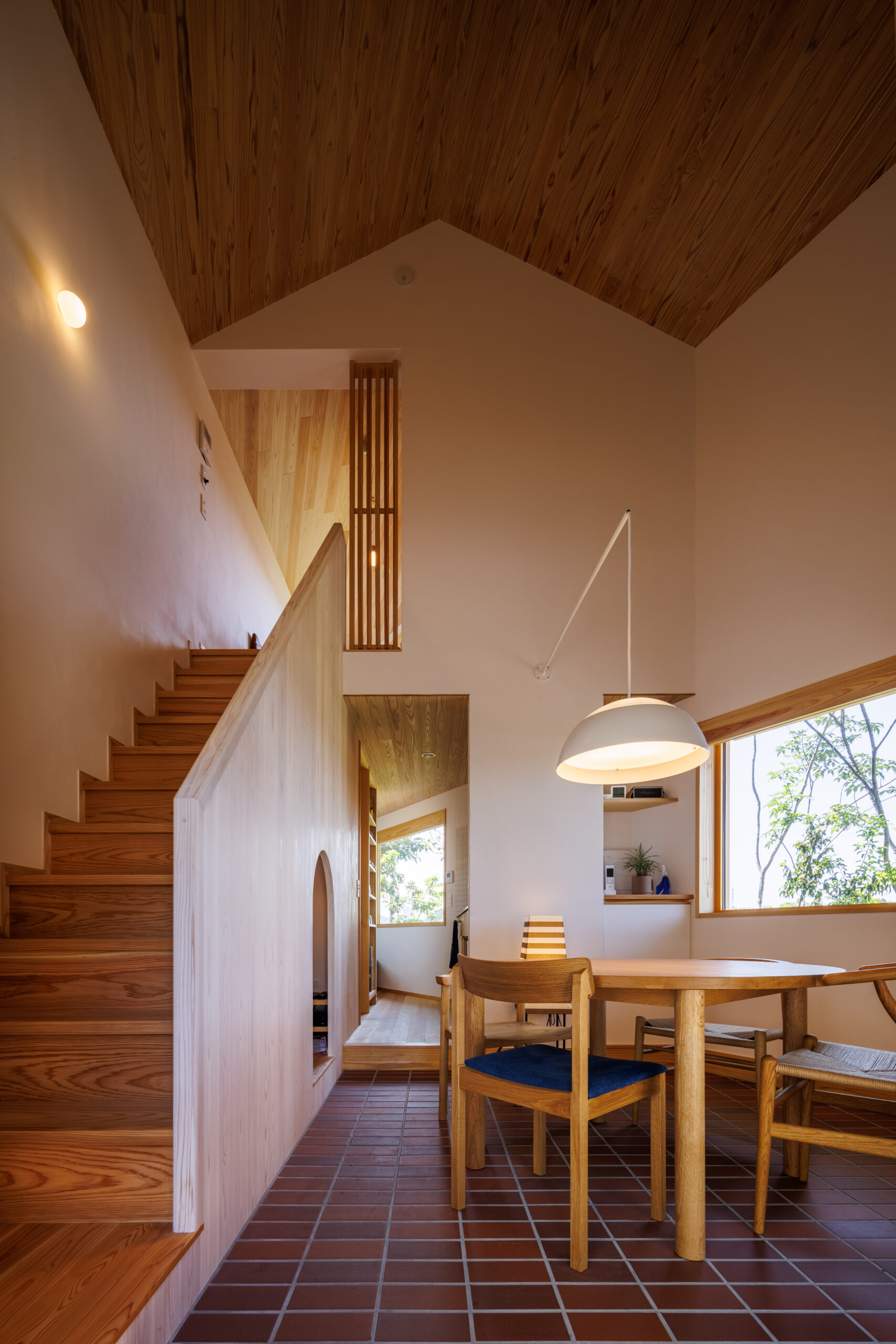 驚くほど小さな三角形敷地に建つ三角形の住宅であるが、内部空間はその狭さを感じさせない豊かな空間が展開しており、各所に多様な居場所が丁寧につくられている。
