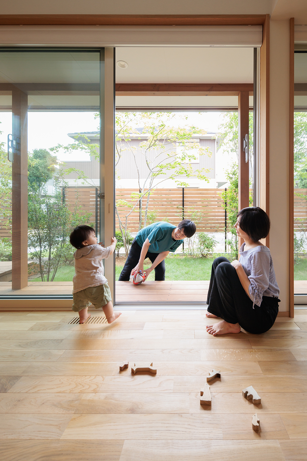 リビングと庭が一体となっていて、リビングから見る景色が気に入ってます。縁側もあるのでよく座ってのんびりしています。また、お気に入りの庭に少しずつ自分達で好みの花や低木等を買い足してガーデニングを楽しんでいます。四季を通しての快適さ、体感された家の性能はいかがですか?