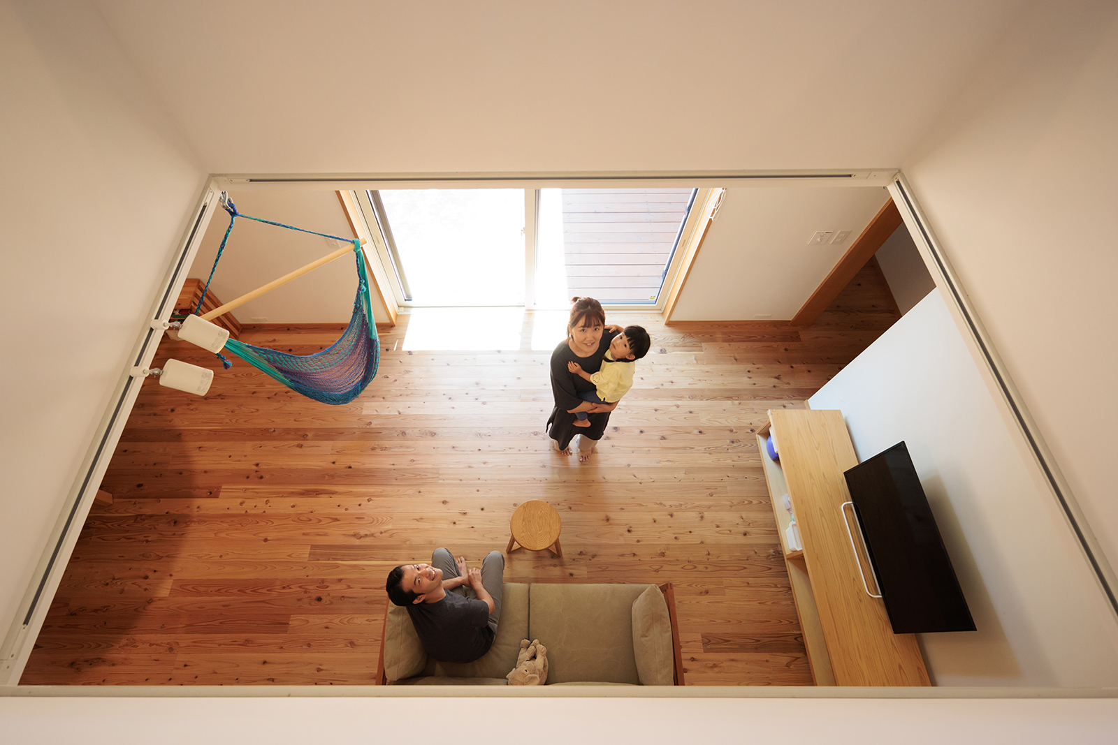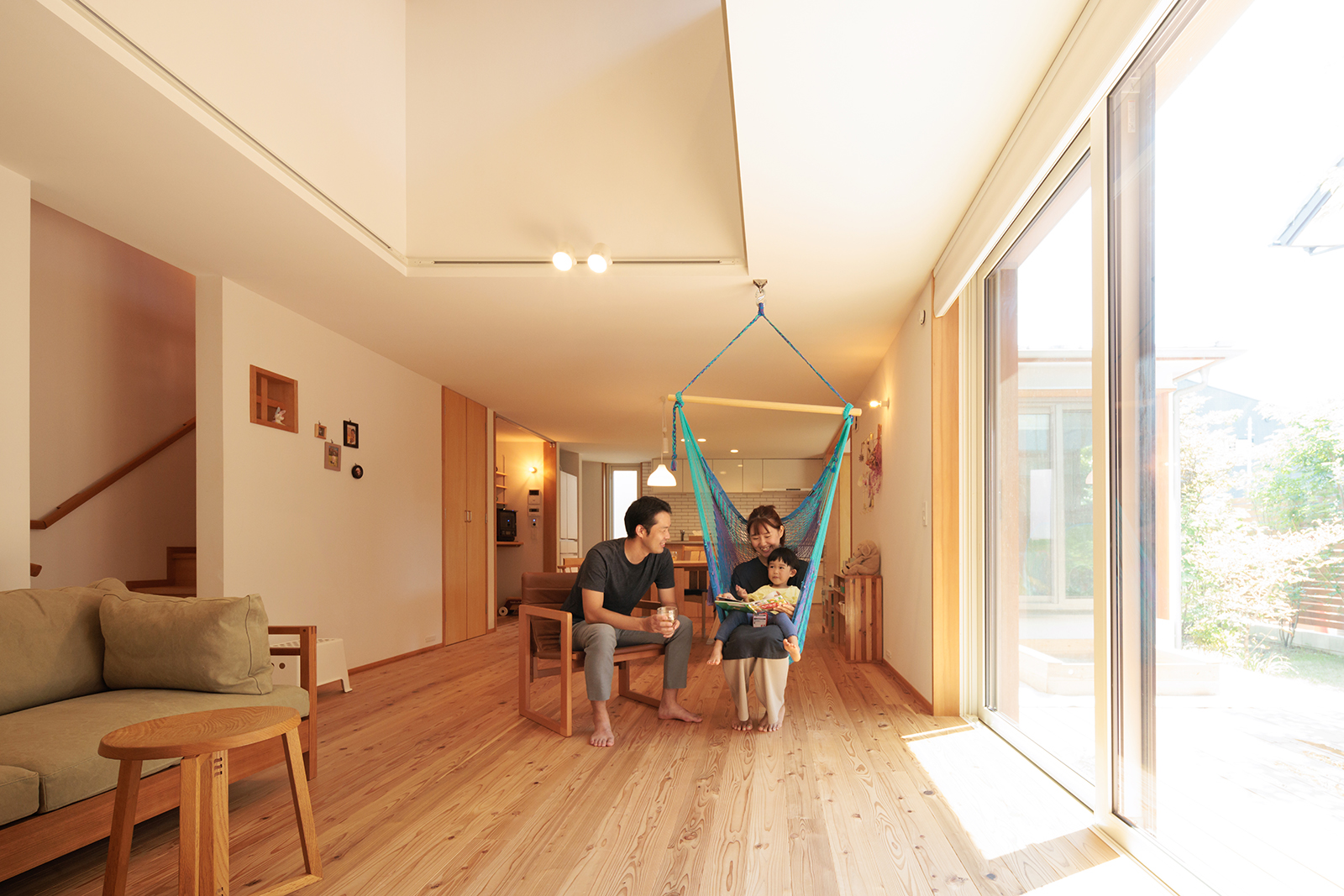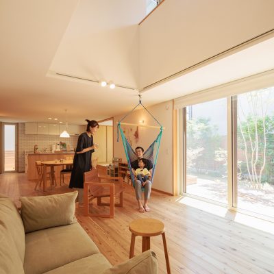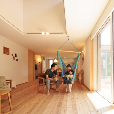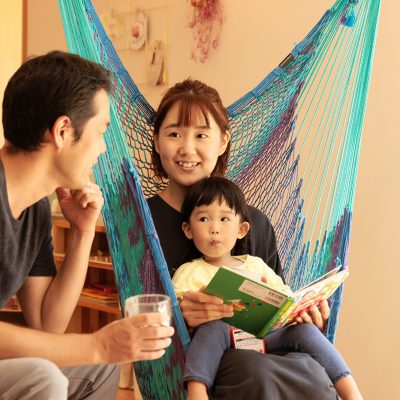 家族で過ごす時間を大切にしたいと思っていたので、リビングを広くしてもらいました。子供が走り回ったり、ハンモックでくつろいだり、今はリビングを広くしてもらって良かったなと思っています。住んでみて気に入っているところはどこですか?
