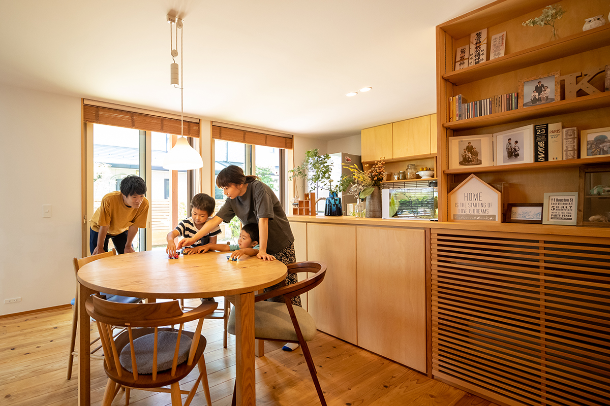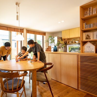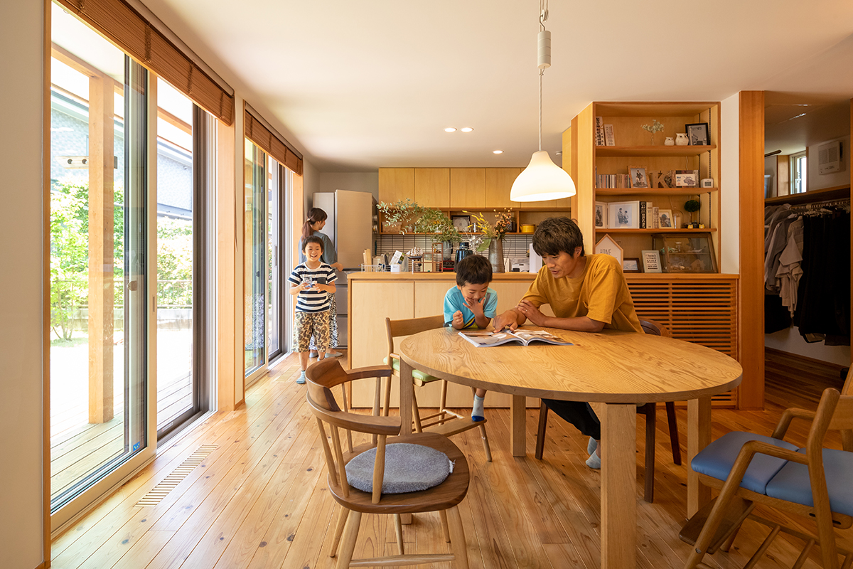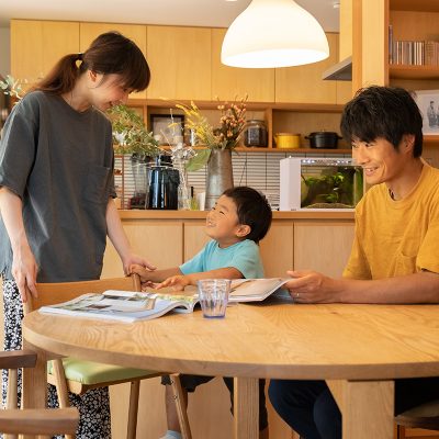 空調は本当に使わなくなりました。住み始めて約三年経ちますが、年々空調を使わなくなっています。家を建てる際に、備え付けの家具にしたので、必要以上は物が収納出来ないようになっているので、家に物が溢れることがない生活になり、快適です。ご家族、ご友人からの評判は?