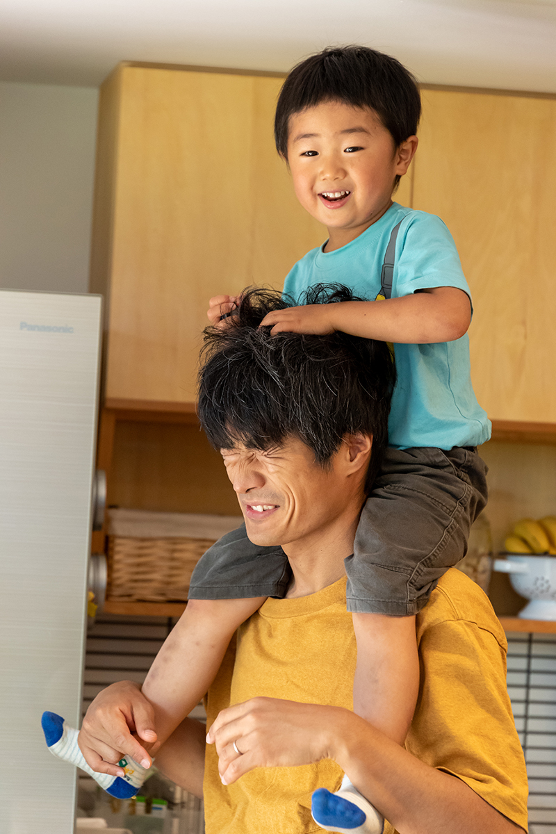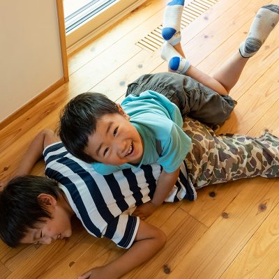 子どもは靴下を履くのを嫌がります。床暖房も入れていないのですが温かいです。子ども部屋も敢えて作ってないので、籠ることもなく動き回っています。長い動線も使って、部屋でキャッチボールもします。実家も藤岡さんに設計してもらい、同じように快適に過ごしています。家に招いた人はみんな我が家を見回して驚いています。これから家づくりを始める人へアドバイス