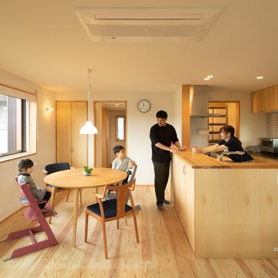 2020年2月初旬に引っ越しましたが、真冬にも関わらずほぼ床下エアコン1台で十分過ごせました。寝るときも寒くなく、部屋間の温度差も無いため、快適性は非常に高いです。また、外構で植栽を多く植えたので、四季折々の表情も楽しみにしています。生活動線の使い勝手はいかがですか?