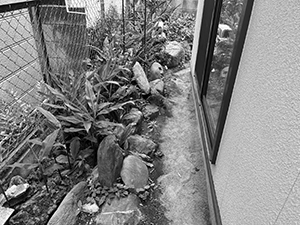 さらに、増築によって庭スペースが狭くなったため、既存の石を移動し、砕石を敷き詰めることで歩行時の安定性を確保。外への動線も快適に整えました。