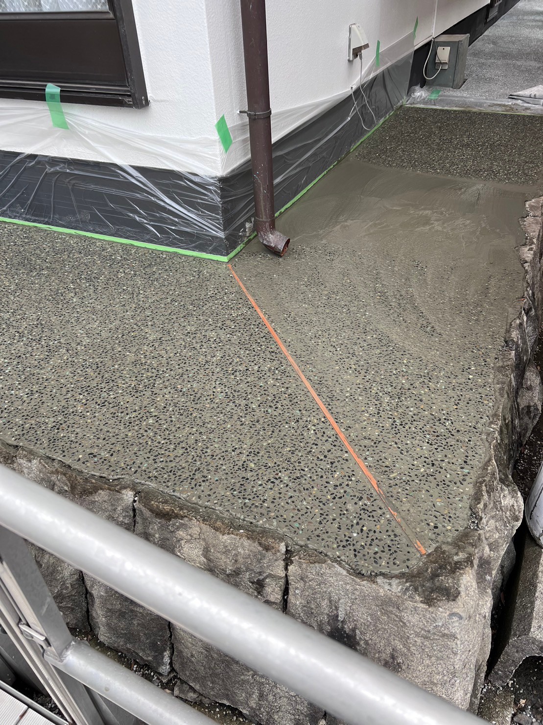 基礎の化粧も合わせて施工させていただきました。養生もしっかりと行います。
