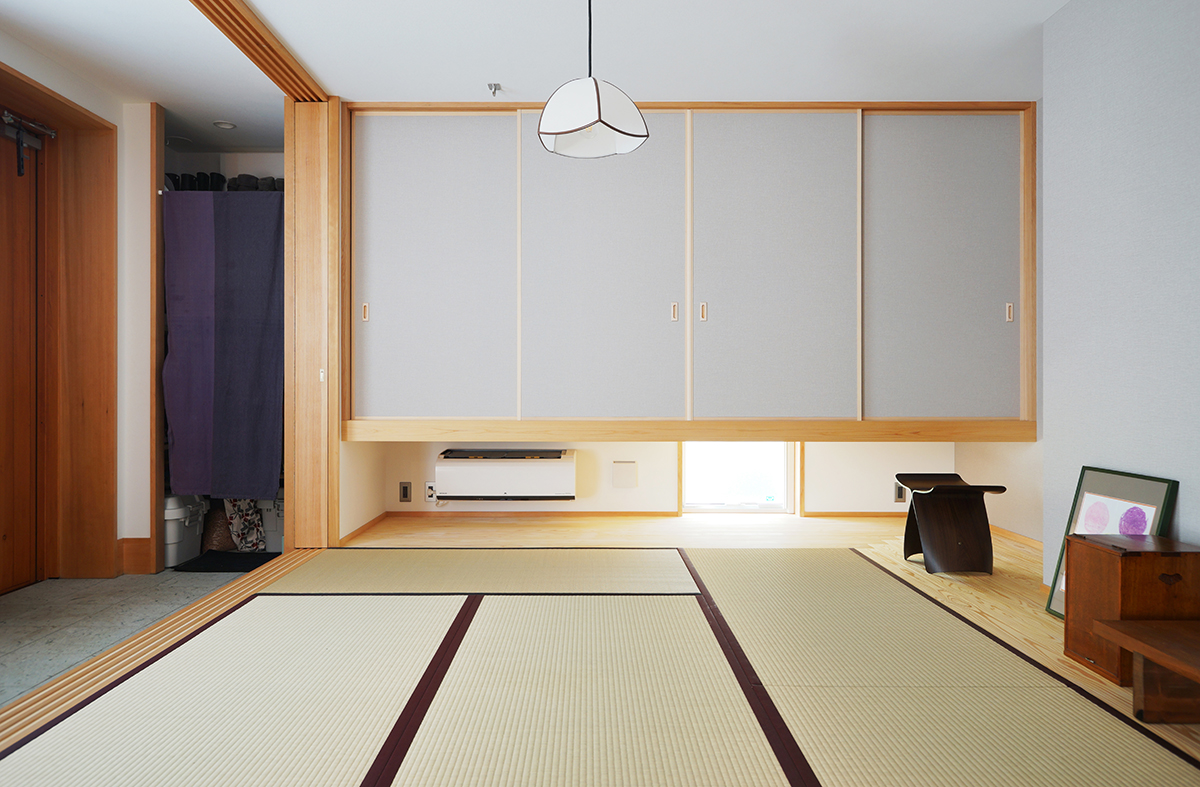 どこか和の佇まいを感じさせる『こなからの家』。もちろん高気密高断熱住宅、耐震等級も3を取得。基本的には平屋をベースにしており1階で生活が完結するように設計しました。