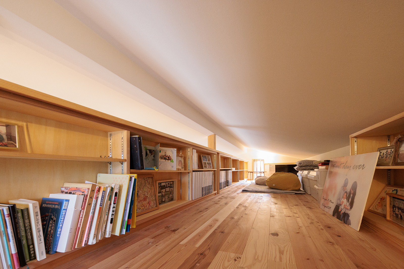 さらにロフトでは大量の本棚。子供たちの隠れ家となっています。