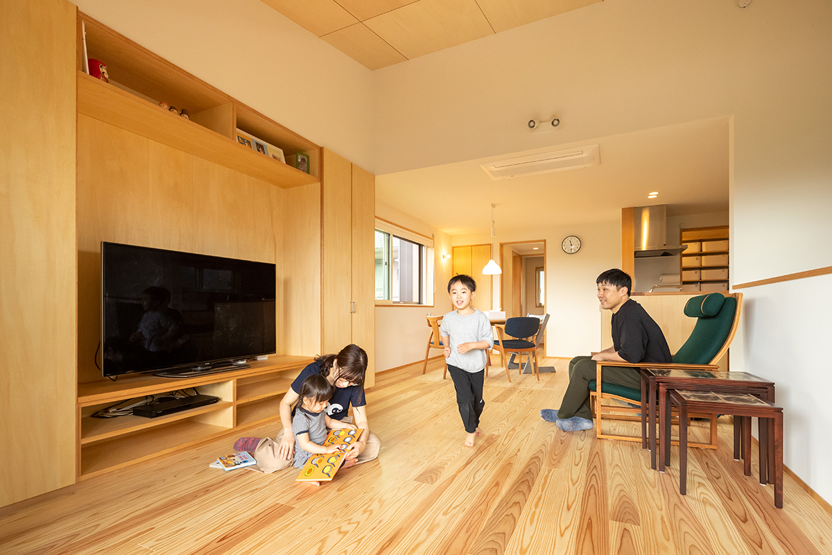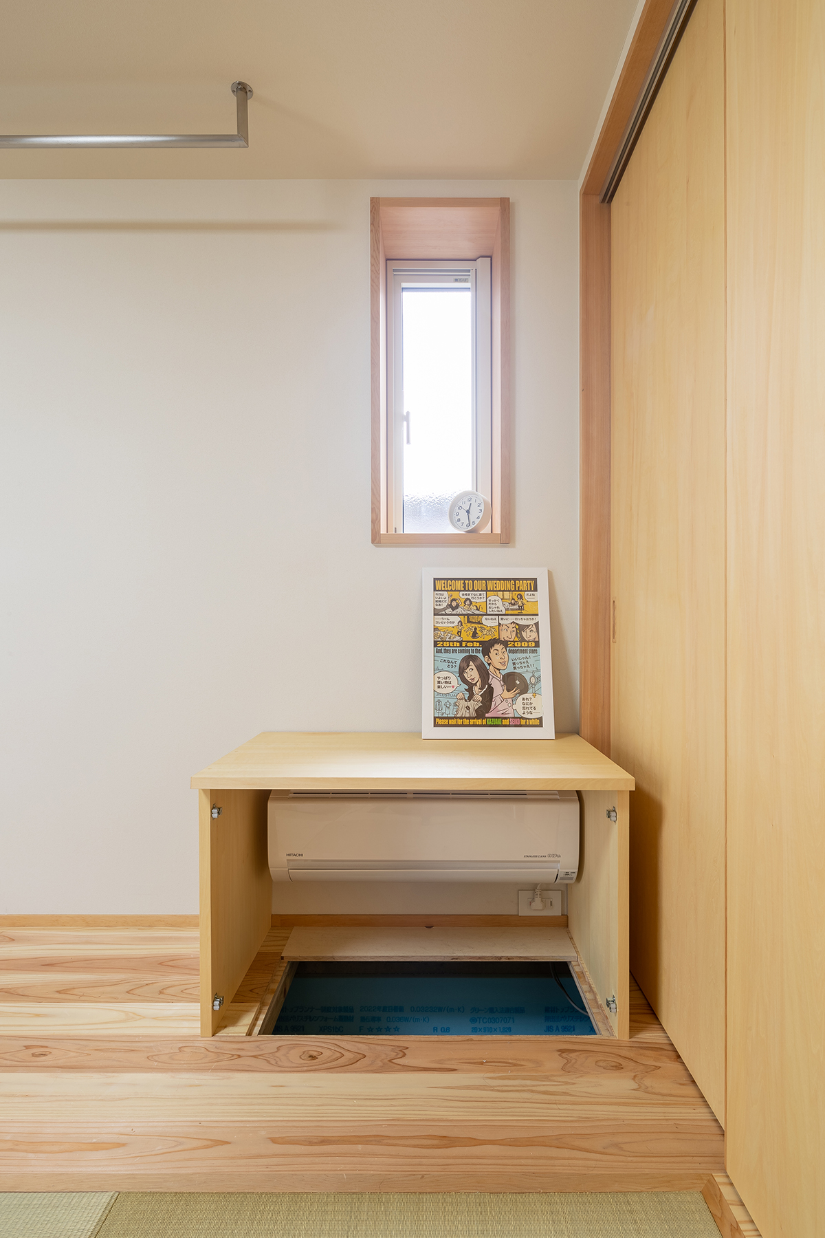 断熱は完全外張り断熱で施工しており、暖冷房はルームエアコン1台で家全体をまかないます。『つながりの家』は設計性能評価・建設性能評価を取得、もちろん長期優良住宅も取得することで体感だけでなく数値でも立証しております。
