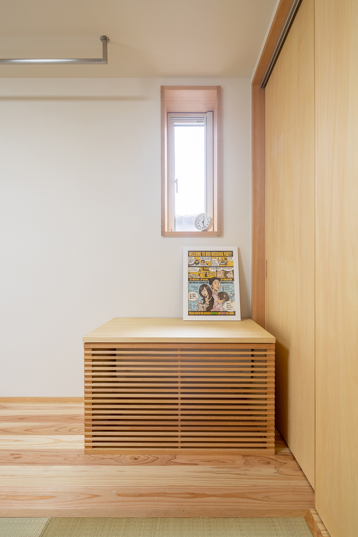 50坪の土地建つ延べ床面積31坪、家族4人の住まいとなっております。南側、西側には集合住宅があり、その通路や駐車場に面するためプライバシーの確保に配慮しながらも目線の抜ける場所をつくり、明るく開放的な空間となるよう配慮しました。